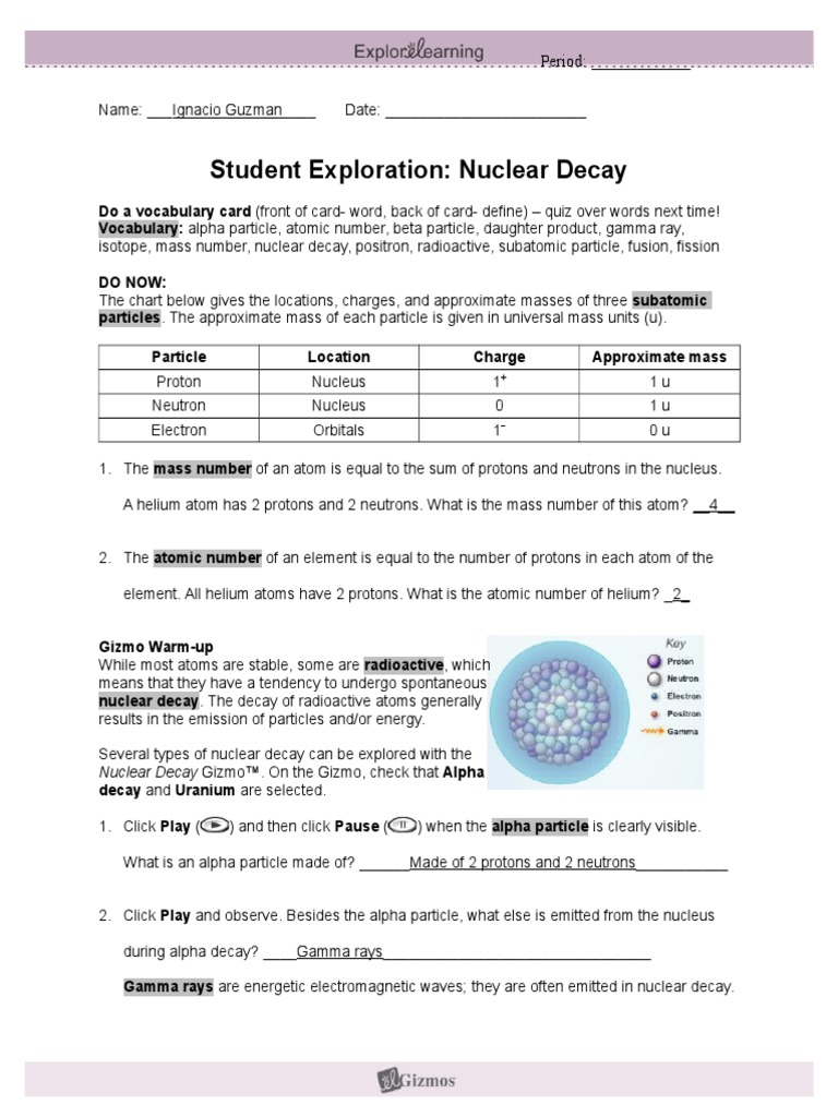 Nuclear Decay Gizmo Answers Pdf › Athens Mutual Student Corner Web complete student exploration nuclear decay answer key in a couple of moments by following the instructions below: Alpha decay, beta decay, gamma decay, positron emission, and electron capture. Alpha decay, beta decay, gamma decay, positron emission, and electron capture. You May Need To Write The Numbers And Element Symbols Below The Image.