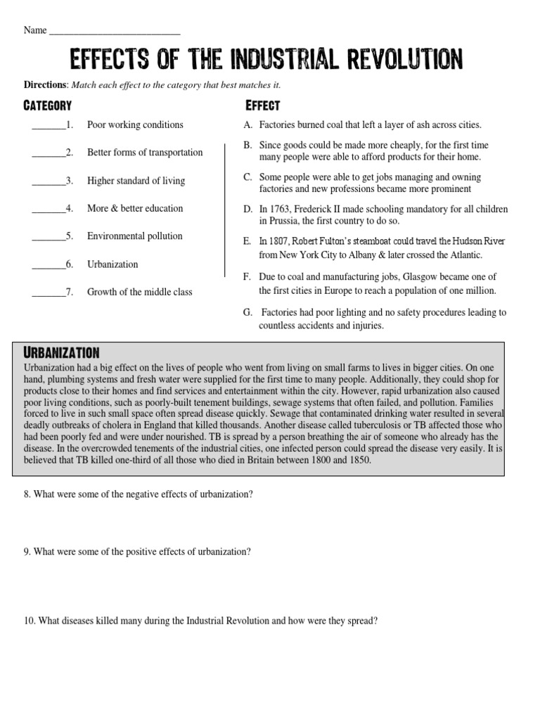 The second industrial revolution worksheet answers