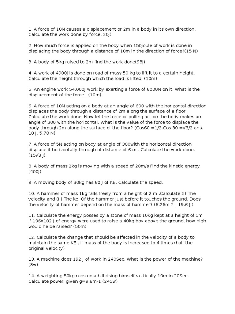Force Work Energy And Power Worksheets - K12 Workbook Worksheets are Work power and energy work, Work energy power work, Work power work, Work power energy, Work power and energy, A guide to work energy and power, Chapter 6 work energy and power, Work energy and power. *Click on Open button to open and print to worksheet. 1. Work, Power and Energy Worksheet 2. WORK, ENERGY & POWER: WORKSHEETS 3.