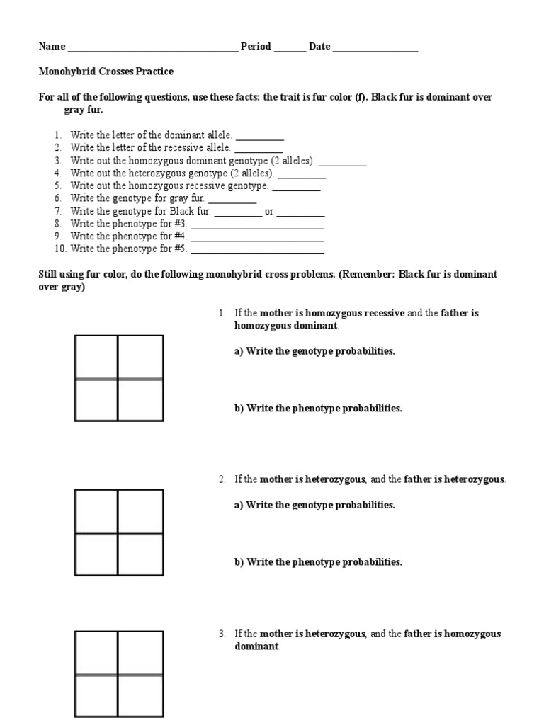 Monohybrid problems worksheet answers