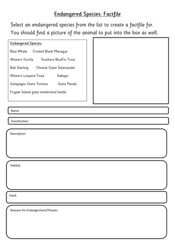 Extinct and Endangered Animals, Free PDF Download - Learn Bright Our Extinct and Endangered Animals lesson plan teaches students about what ... One such option you could do is “adopt” an endangered species through the WWF ...