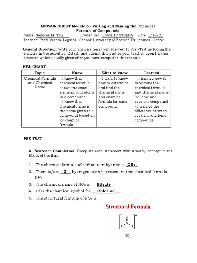Extra questions for balancing chemical equations class 10 Oct 20, 2022 · Writing a chemical reaction A chemical equation represents a chemical reaction. If you recall formulae of magnesium, oxygen and magnesium oxide, the above word-equation can be written as - Mg+O2 →MgO. 5. Balancing a chemical reaction To balance a chemical equation, first draw boxes around each formula. Naming Ionic Compounds Worksheet – Easy Hard Science Use this naming ionic compounds worksheet (answers provided) to quickly learn important chemical names and formulas. There are 4 exercises to practice, plus complete instructions, in the 5 page packet. We’ll start from the very beginning, as these chemical names and formulas are a great way to start learning chemistry.
