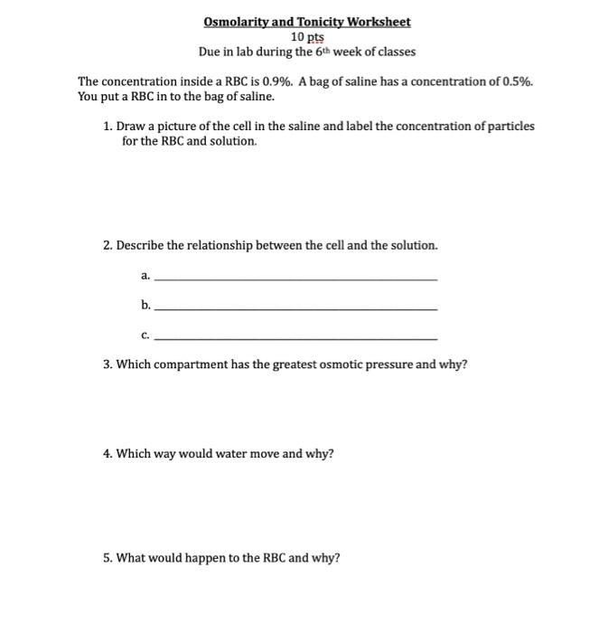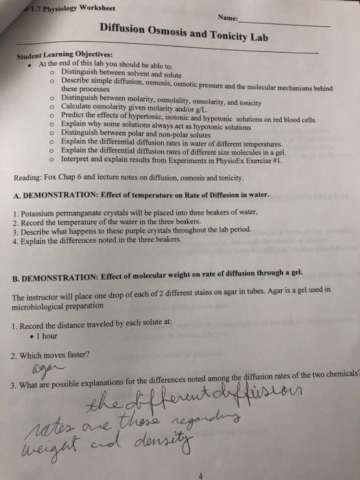 Osmosis and tonicity worksheet. (OLD VIDEO) Osmosis - YouTube This video has been updated here: Learn osmosis with real life examples! The terms hypertonic, hypotonic, and isotonic are explo... Osmosis and Water Potential (Updated) - YouTube Explore the process of osmosis in this updated Amoeba Sisters video! Video features real life examples of osmosis, important vocab, and introduces concept of... IB 1108 L07 Osmosis - BIO 110 Lab assignments - StuDocu EXPERIMENT 1: TONICITY AND THE ANIMAL CELL Hypothesis Data Data Tables. Table 1: Osmosis Results. Solution Type Before OsmosisVolume (mL) After OsmosisVolume (mL) 100% Distilled Water 50 mL 30 mL. 100% Corn Syrup 50 mL 65 mL. 10% Corn Syrup/90% Distilled Water 50 mL 60 mL Control 0 mL 10 mL. Table 2: Observations of Eggs After Osmosis when to give isotonic, hypotonic and hypertonic solutions when to give isotonic, hypotonic and hypertonic solutions Merti Technical & Vocational College . Center of excellence