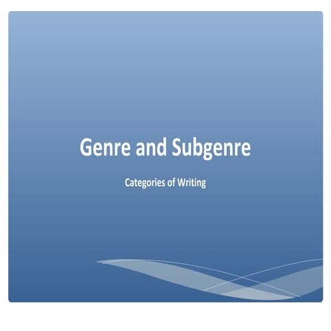 Genre and Subgenre worksheet Genre and Subgenre Worksheets where students have to identify the type of genre and subgenre of each text based on clues provided ID: 1555623 Language: English School subject: English language Grade/level: 6 Age: 10-12 Main content: Genres and subgenres Other contents: