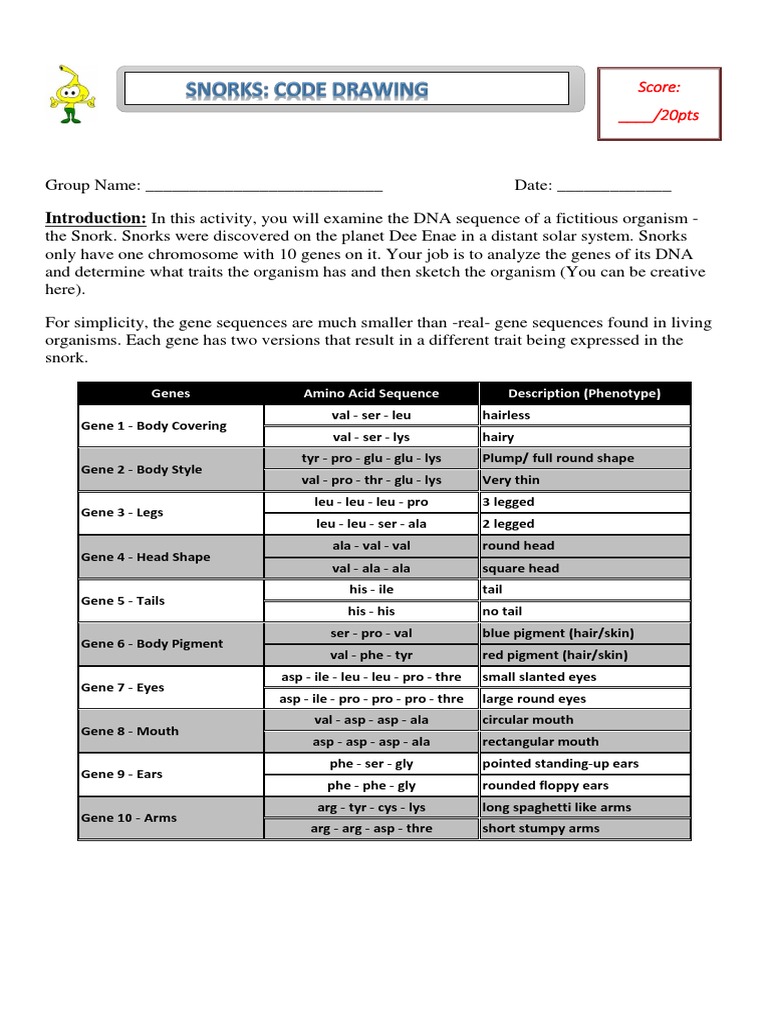 Dna rna and snorks worksheet answers