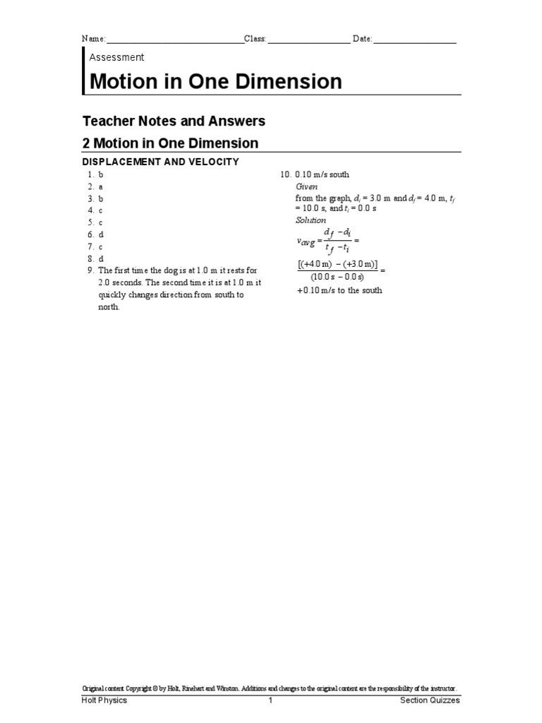 One dimensional motion problems with solution - Physicscatalyst Motion in straight line with variable acceleration with Problem and solutions; Free fall acceleration; Relative velocity; 1D Kinematics Problems And Solutions; One dimensional motion problems with solution; Motion graphs worksheet with Answer; Assignments and worksheets. Important Questions on Kinematics; Kinematics worksheet; Motion in one ...