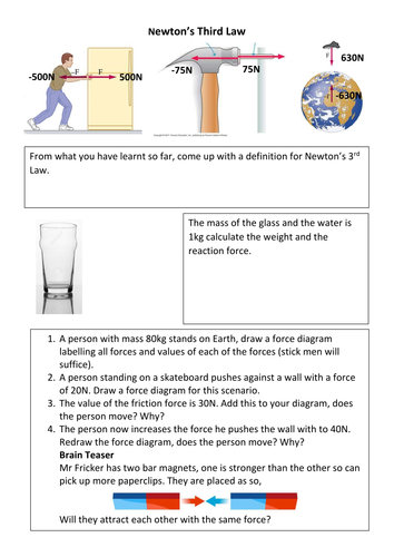 Newton's Third Law | Teaching Resources Newton's Third Law | Teaching Resources Newton's Third Law Subject: Physics Age range: 11-14 Resource type: Worksheet/Activity 10 reviews File previews pptx, 1.06 MB docx, 455.63 KB This was created using some of the great resources on TES and put in a format that I feel is manageable for my classes.