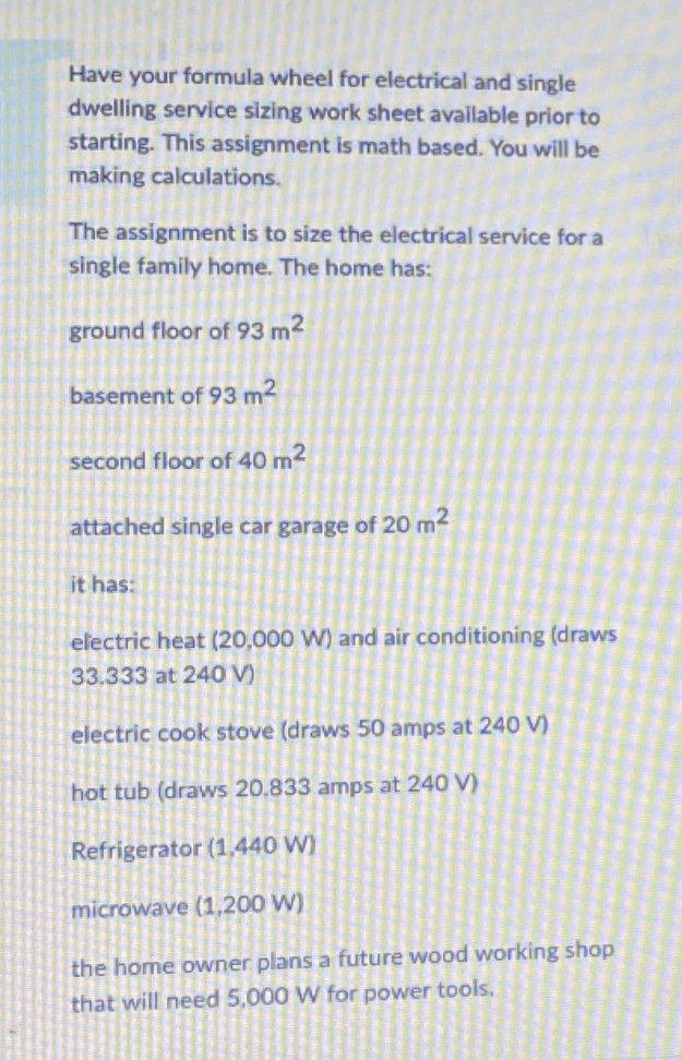 Single family dwelling electrical load calculation worksheet. Residential Load Calculators – Central Electric Inspection Bureau WebWorksheet 1 (heating load larger than A/C load) and Worksheet 2 (A/C load larger than heating load) use the optional calculation found in NEC 220.82 for a new single-family dwelling. Worksheet 3 uses the optional calculation found in NEC 220.83 to compute the adequacy of the existing service when a room addition is built or other loads are added to … Single Family Dwelling Electrical Load Calculation Worksheet A single family dwelling has a floor area of 2500 square feet and one 15 kw electric range. It has three small appliance branch circuits and a 5 kw wall oven. The single family dwelling electrical load calculation worksheet should use the actual nameplate rating of each appliance. The calculations should be performed using these methods. Electrical Load Calculation Worksheet - Fill Online, Printable ... Fill Electrical Load Calculation Worksheet, Edit online. Sign, fax and printable from PC, iPad, tablet or mobile with pdfFiller Instantly. Try Now! Home; ... NEC Standard Electrical Load Calculation for Single Family Dwellings (Only for Service Ratings of 120/240V, 225 Amps Max) Owner: Location: Total Floor Area of Dwelling (NEC 220.12) Factor ... PDF SINGLE FAMILY DWELLING ELECTRICAL SERVICE LOAD CALCULATION - San Diego SINGLE FAMILY DWELLING ELECTRICAL SERVICE LOAD CALCULATION OPTIONAL METHOD - 2001 CALIFORNIA ELECTRICAL CODE SECTION 220-30 (Based on 1999 NEC) As an alternative method the STANDARD METHOD found in Article 220 of the National Electrical Code, may be used ... MOTOR LOAD(s) (220-30 (b) (4) - Nameplate Value(s) _____VA ...