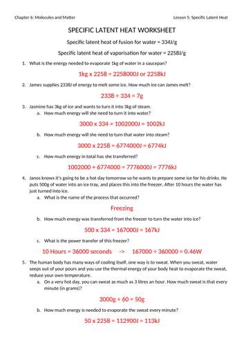 Specific heat worksheet answers
