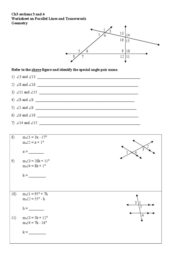 Worksheet on parallel lines and transversals geometry answers