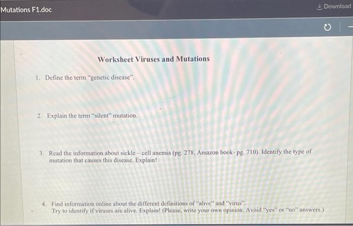 45 mutations and genetic conditions worksheet
